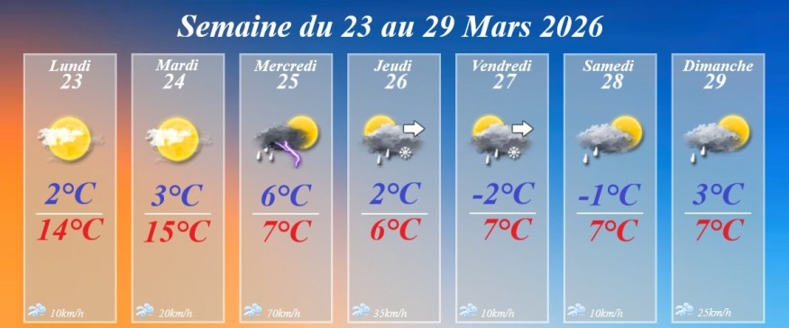La semaine du 23 au 29 mars 2026 s’annonce contrastée sur les Plaines de Champagne, avec un net changement de temps attendu dès le milieu de semaine.