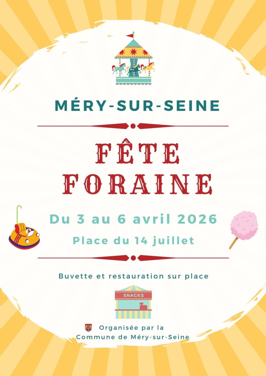 Les amateurs de sensations et de convivialité ont rendez-vous à Méry-sur-Seine pour un événement incontournable du printemps : la fête foraine s’installe du 3 au 6 avril 2026, place du 14 Juillet.